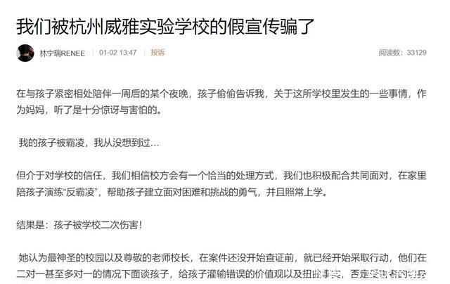 随后,郝邵文浑家平直点名杭州某学校,称被他们演叨宣传骗了,在她文中讲演的男儿校园履历,听的让东说念主很心酸。 郝邵文浑家称: 1.男儿在晚上睡前暗暗告诉我方,她碰到了校园霸凌,频繁作念恶梦哭醒。 2.我方和学校屡次同样,并在家里演练反对校园霸凌的责罚样子,没思到男儿在学校居然又碰到了二次伤害。 3.学校责罚的样子很可恶,误解受害者被霸凌事实,给孩子灌注造作的不雅念,导致孩子认为这是“一又友间的一种游戏”。